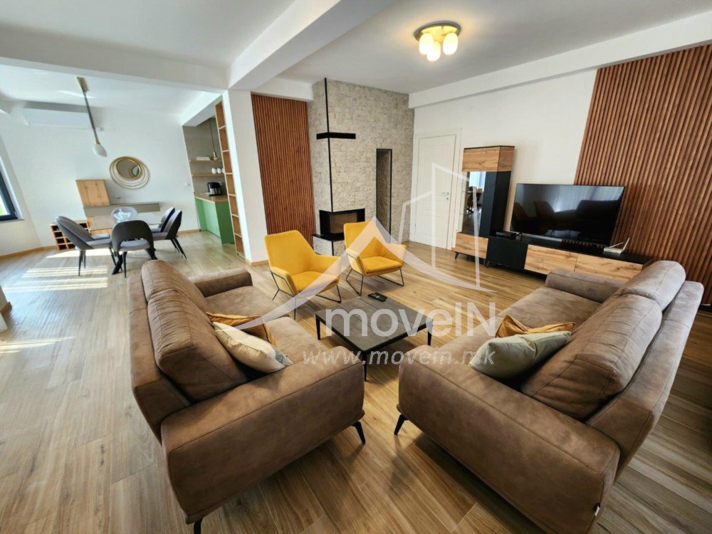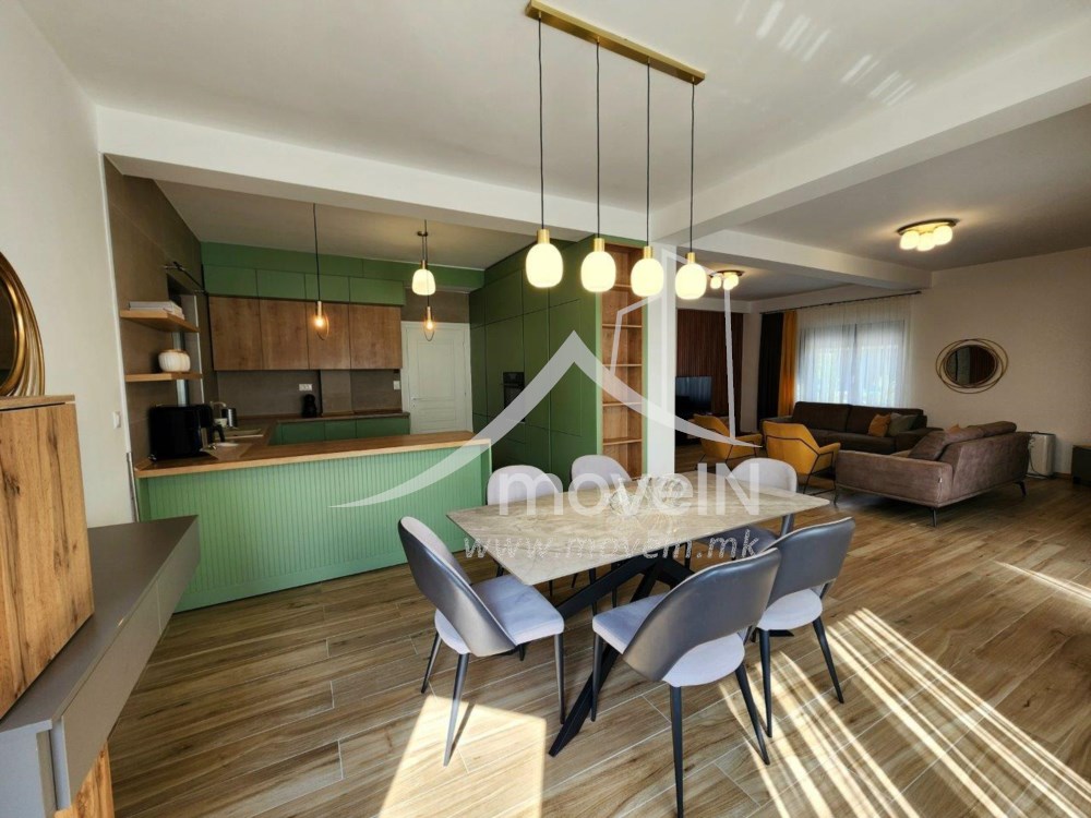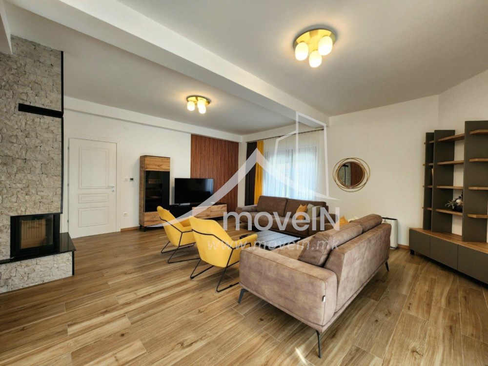 На приземјето се наоѓа пространа дневна со отворен концепт, опремена со камин и функционално поврзана со трпезаријата и модерна, целосно опремена кујна. Од овој дел се излегува на уредена тераса и зелен двор. Дополнително, на ова ниво се наоѓаат работна/гостинска соба и комплетно опремена бања.