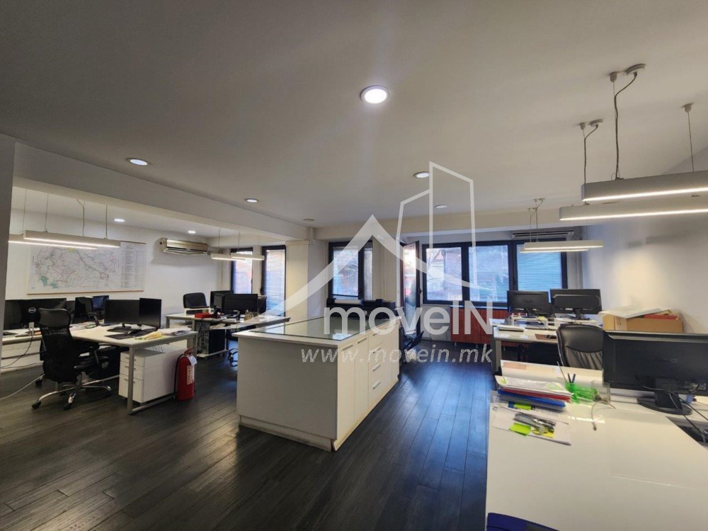 Се продава канцелариски простор на одлична централна и многу фрекфентна локација со површина од 243м2 во станбено - деловна зграда со лифт.