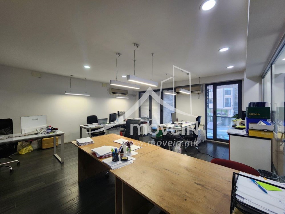 Просторот располага со влезен ходник кој може да се користи како приемен простор, 1 отворен простор, дополнителни одвоени канцеларии, кујна, тоалети и тераса.
