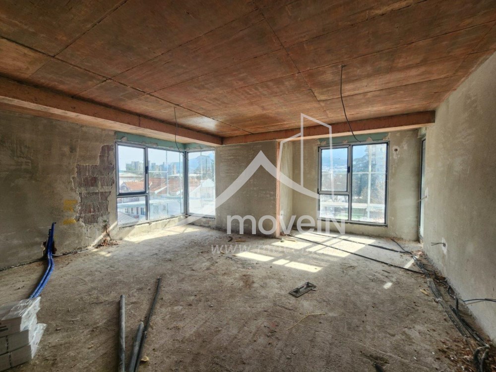 Станот содржи отворен концепт - пространа дневна соба со кујна и трпезарија, 3 големи спални соби, 2 бањи и 2 тераси.