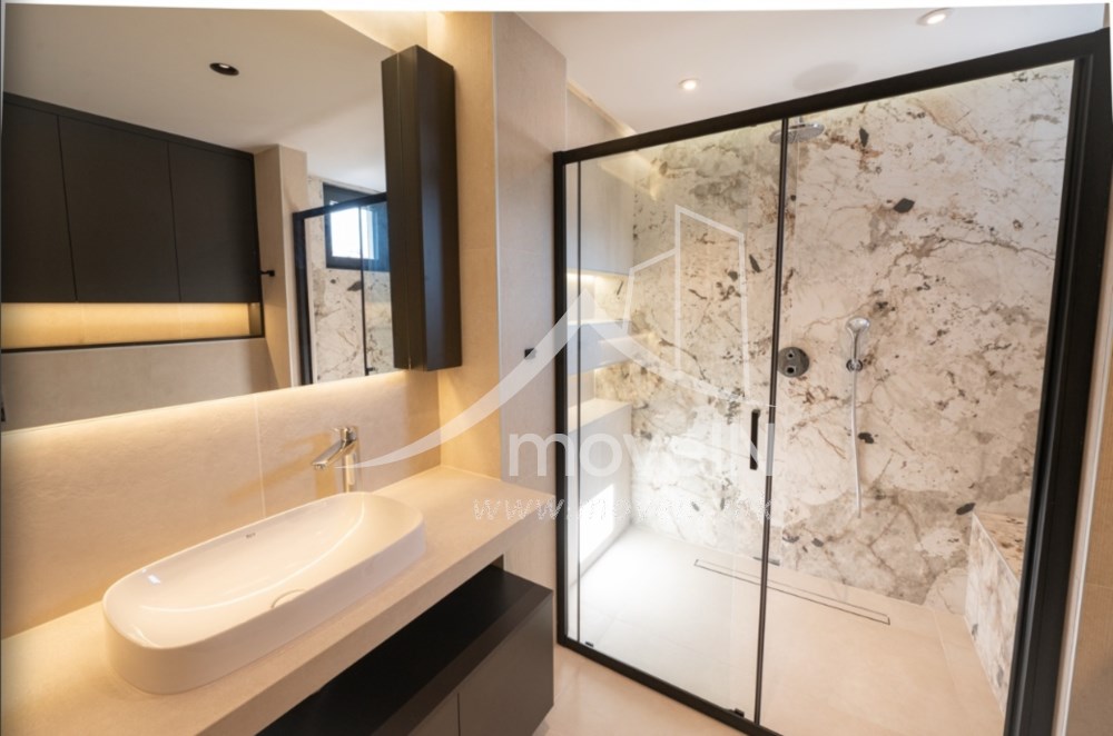 The heating system is with Daikin heat pump, underfloor heating in all rooms and the cooling is with Fan coil units with smart internet control.