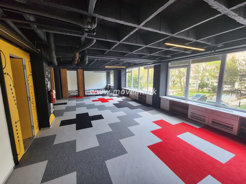 Well designed new work space for rent with 300m2 total area on a mezzanine of a building. The space is open with 3 ocean spaces, 2 conference rooms, manager office, reception area, separate kitchen, 4 toilets, an individual heating and cooling system with fan coilers, parking space for 1 vehicle and extra possibility for few more.