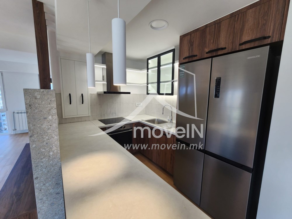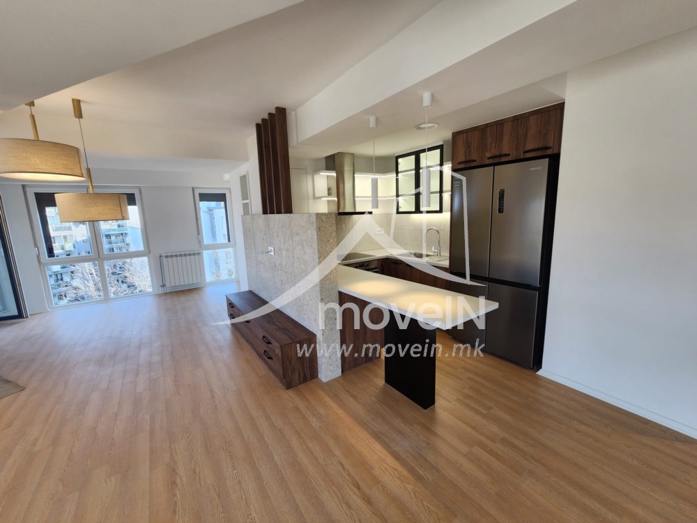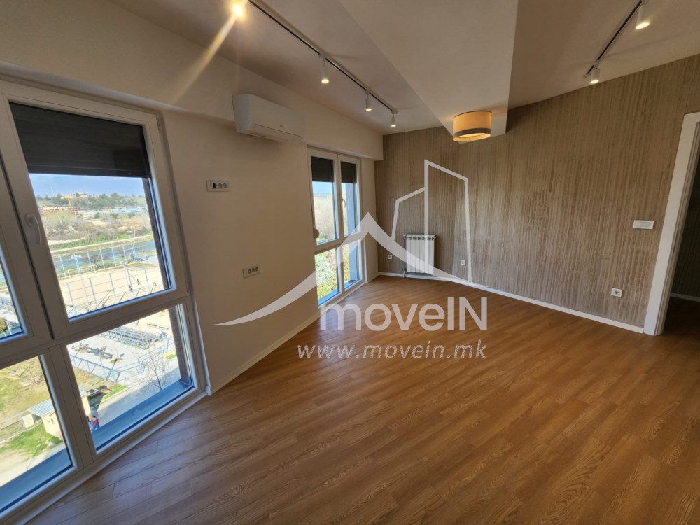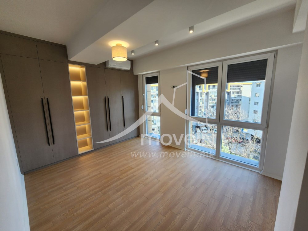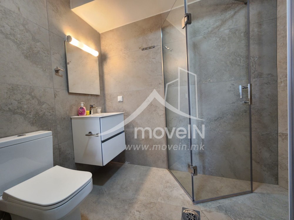 The apartment has а master bedroom with own bathroom and one standard bedroom, guest toilet, fully equipped kitchen, a balcony with a nice view, heating and cooling system on electricity and a parking space in an underground garage.