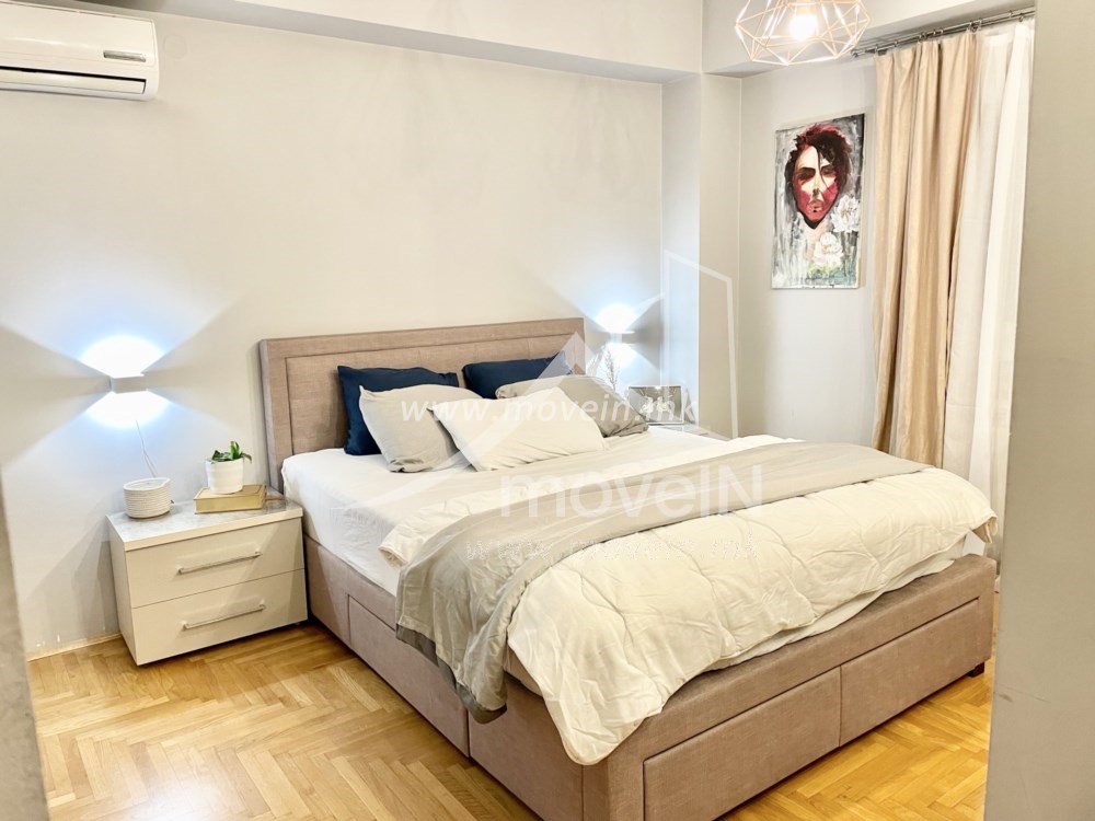 Опремен е со индивидуален систем за греење на струја, клима уред и обезбедено паркинг место во подземна гаража вклучено во цената.